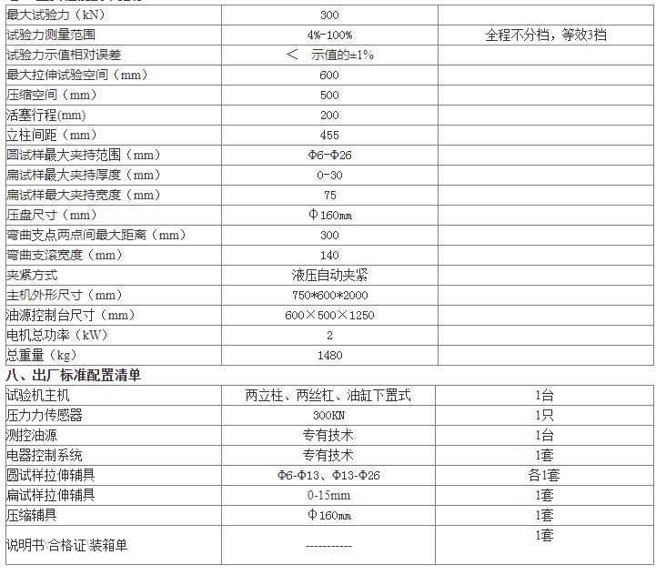 主機為兩立柱、兩絲杠、油缸下置式,拉伸空間位于主機的上方,壓縮、彎曲試驗空間位于主機下橫梁和工作臺之間。測力儀表采用高清液晶顯示屏,實驗數據方便直觀。
