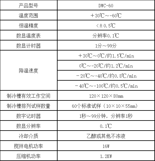 DWC-60/-60沖擊試樣低溫槽產品技術參數:
