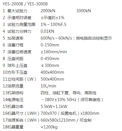 YES-2000B; 3000B / 2000kN ;3000kN;YES-B系列數顯式壓力試驗機
